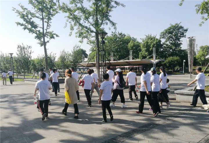 按照活動安排,上午7點55分,參加活動的人員來到指定地點集合完畢。8點整,大家從起點列隊出發,開始了環牧城明湖健步之旅。一路上,大家沐浴著燦爛陽光,呼吸著江邊清新的空氣,一邊觀覽著牧城公園的秀麗美景,一邊欣賞著草坪音箱里播放的曼妙音樂,沿著環湖步道,甩起臂膀、邁開大步,朝著終點目標前進。8點29分,第一位員工跑步到達終點,緊接著,第二位、第三位……至上午9點,參加活動人員全部抵達終點,無一人掉隊。