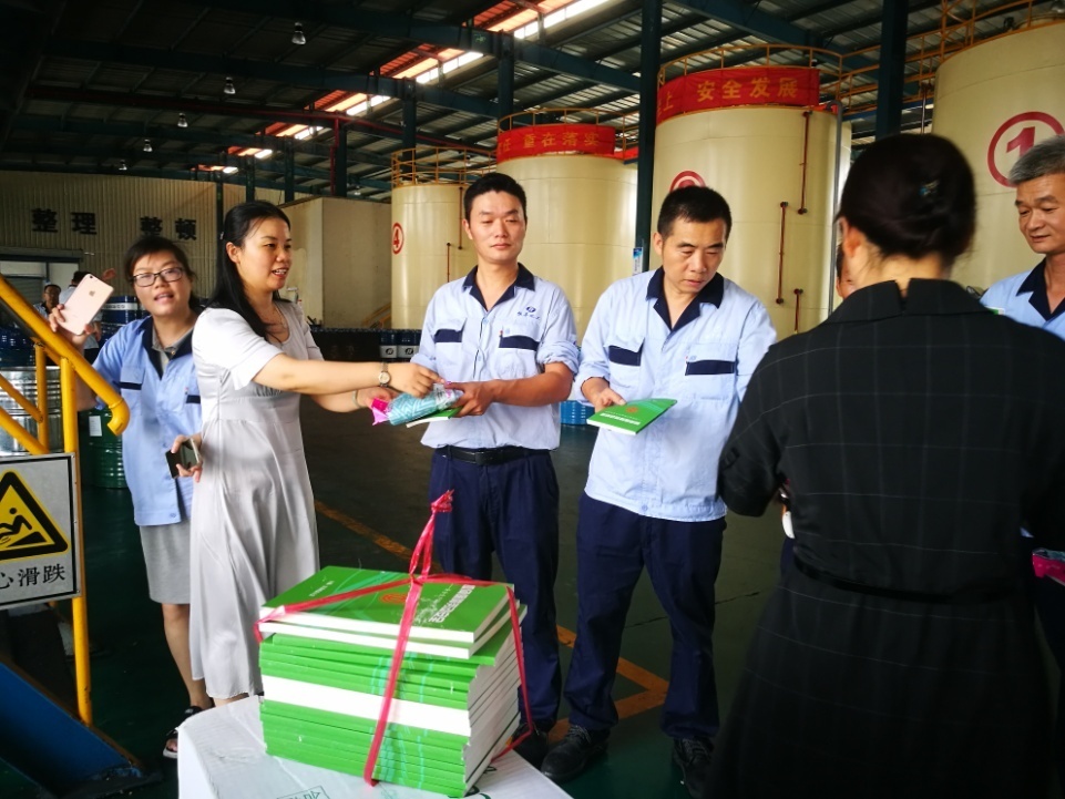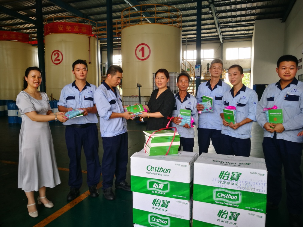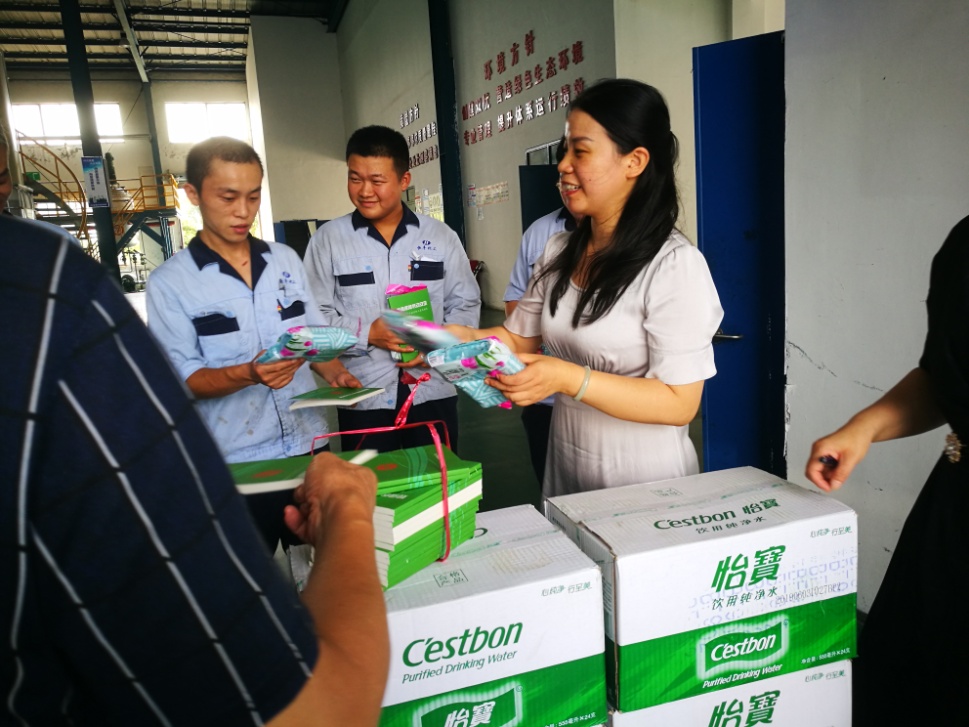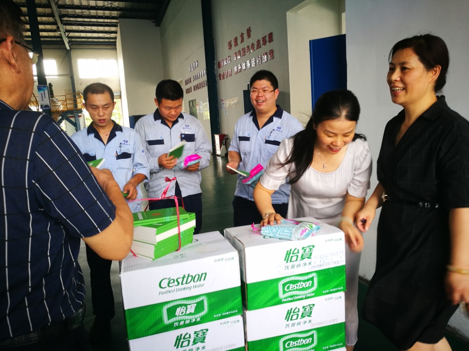 2019年8月15日上午,靖城街道總工會主席陳波一行,頂著烈日,帶來了礦泉水、毛巾以及安全生產知識普及讀本等,到我公司走訪慰問一線生產員工。