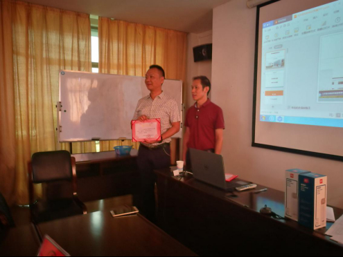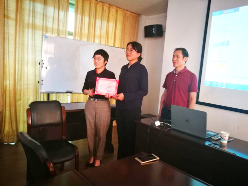 圖四 管代(右一)與團(tuán)體第一名——市場(chǎng)部負(fù)責(zé)人合影留念