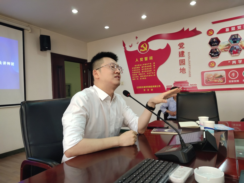 靖江市人民法院團支部書記、法官助理、“驥江劍”青年普法講師團團長倪伽任法官為大家宣講了民法典相關法律知識和校園霸凌的一些案例,讓大家對婚姻、養老繼承、合同、隱私權等有了更深層次的了解,掌握了一些正確保護未成年人合法權益的方式方法。宣講期間,法官講師與員工間互動頻繁,現場氛圍和諧、輕松,倪法官的精彩講解不時博得員工雷鳴般的掌聲。